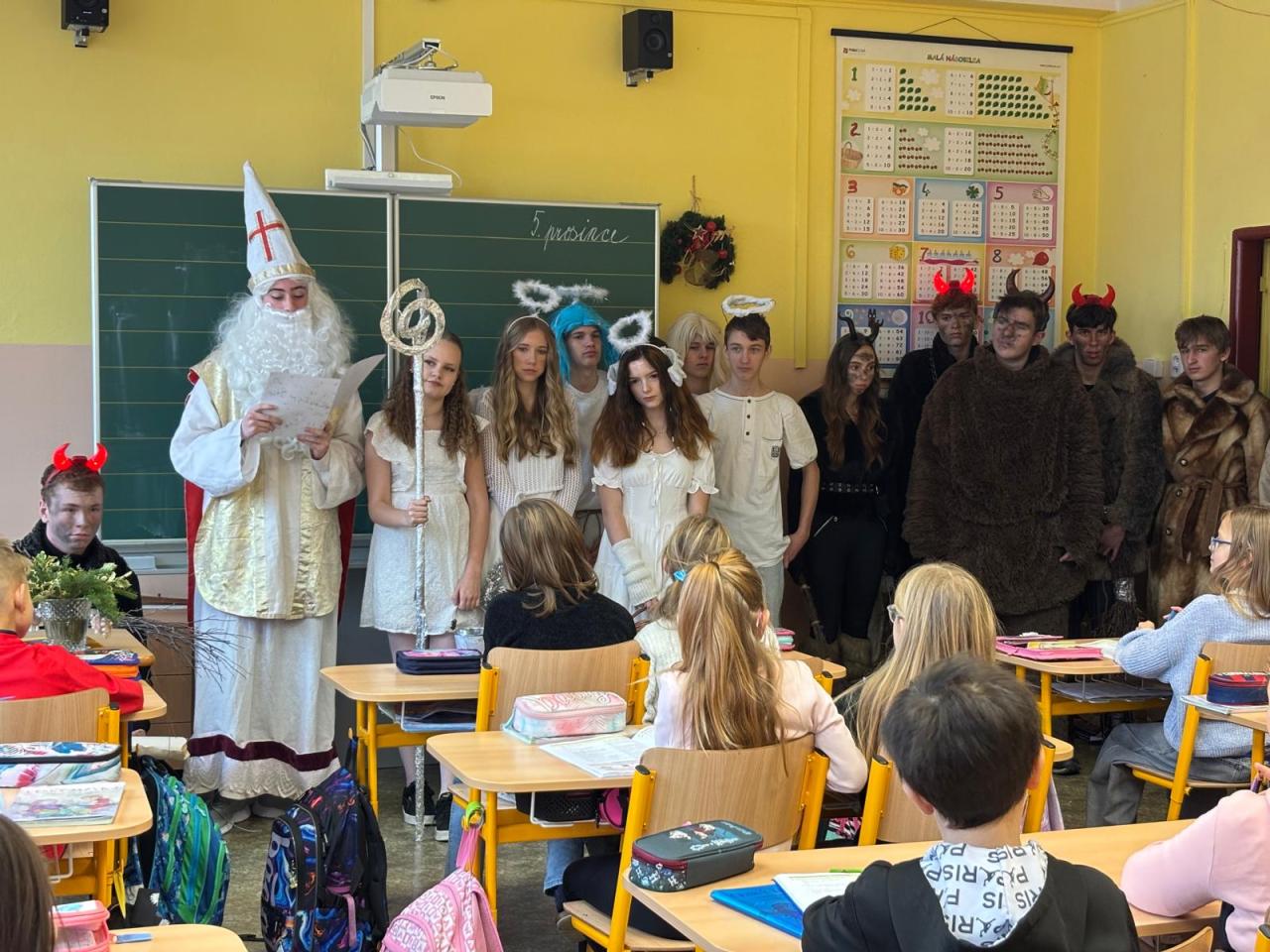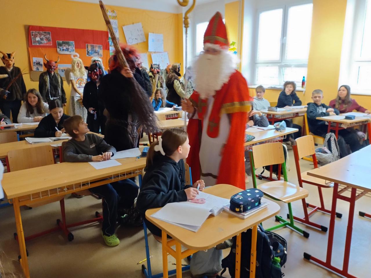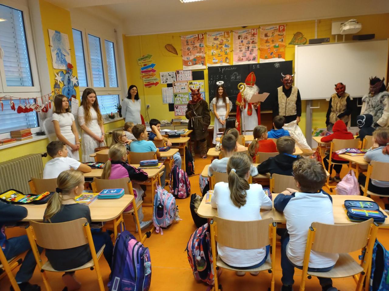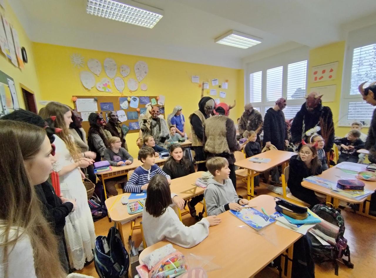 Od prvních do pátých tříd přinesli dětem radost, dárečky a také trochu ponaučení, že zlobit se nevyplácí. Děti byly pochváleny, ale také některé musely slíbit, že už nebudou zlobit, jinak si je Mikuláš s čerty příští rok odnesou do pekla.