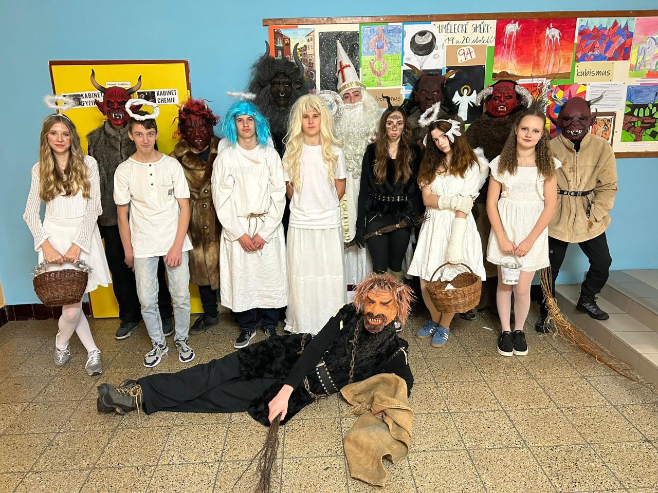 Zvláštní je, že v tu samou chvíli, ve kterou chodili čerti s anděli a Mikuláši po škole, zmizeli žáci tříd 9.A a 9.B a nebyli k nalezení. Někdo říká, že leckteří pekelníci dokonce měli rysy našich deváťáků!