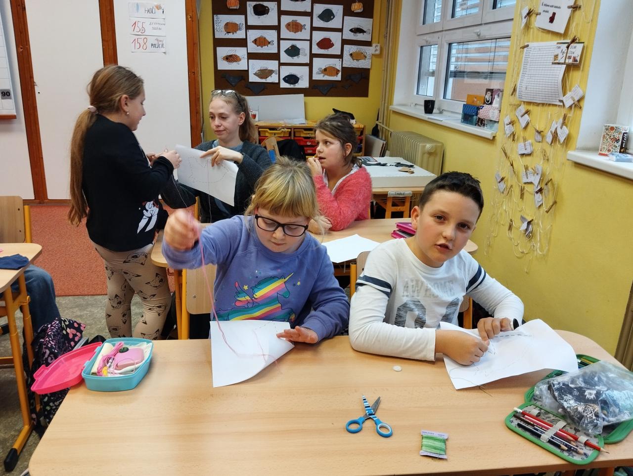 16. 11. Učíme se šít- přišíváme knoflíky, vyšíváme obrázky