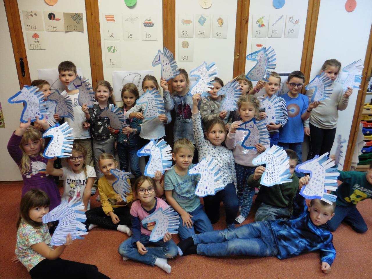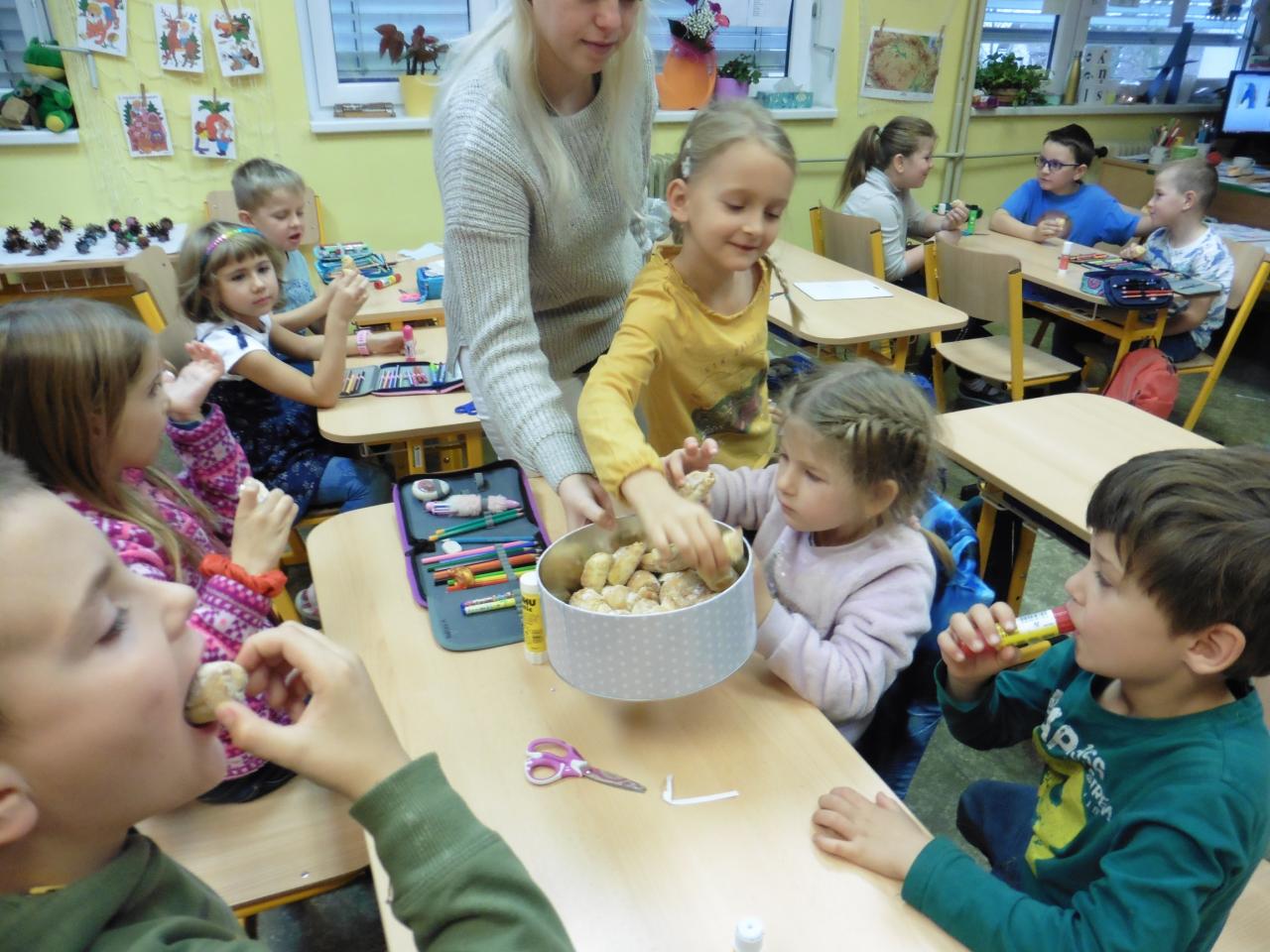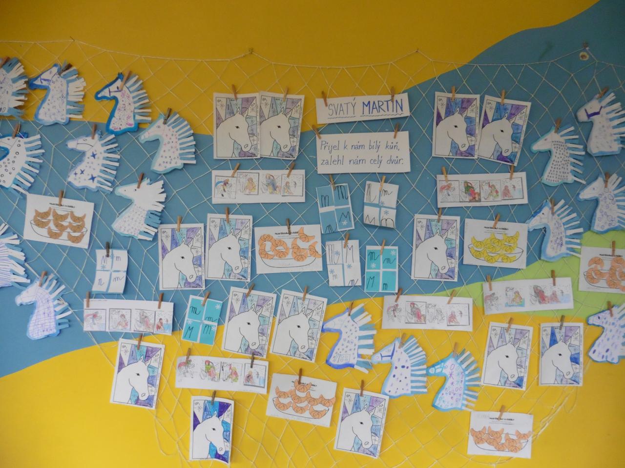 Dnes jsme přivítali Martina říkadly s nástroji. Potom jsme vybarvovali, počítali i ochutnávali martinské rohlíčky, poslechli si legendu a skládali příběh podle obrázků. Nakonec jsme vyrobili bělouše pro Martina a naučili se básničku.
