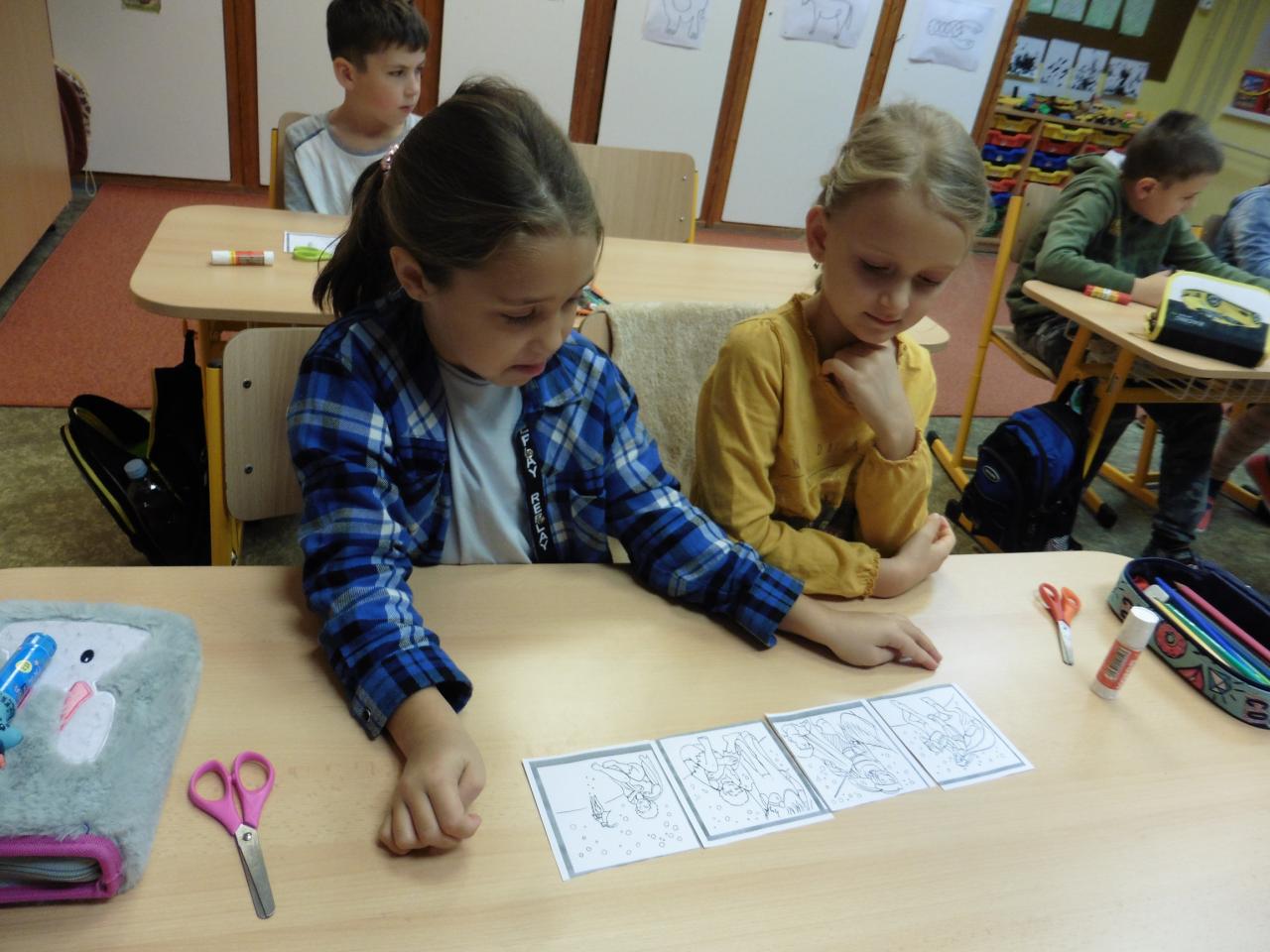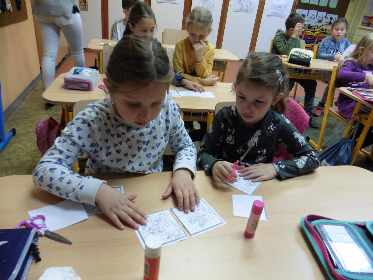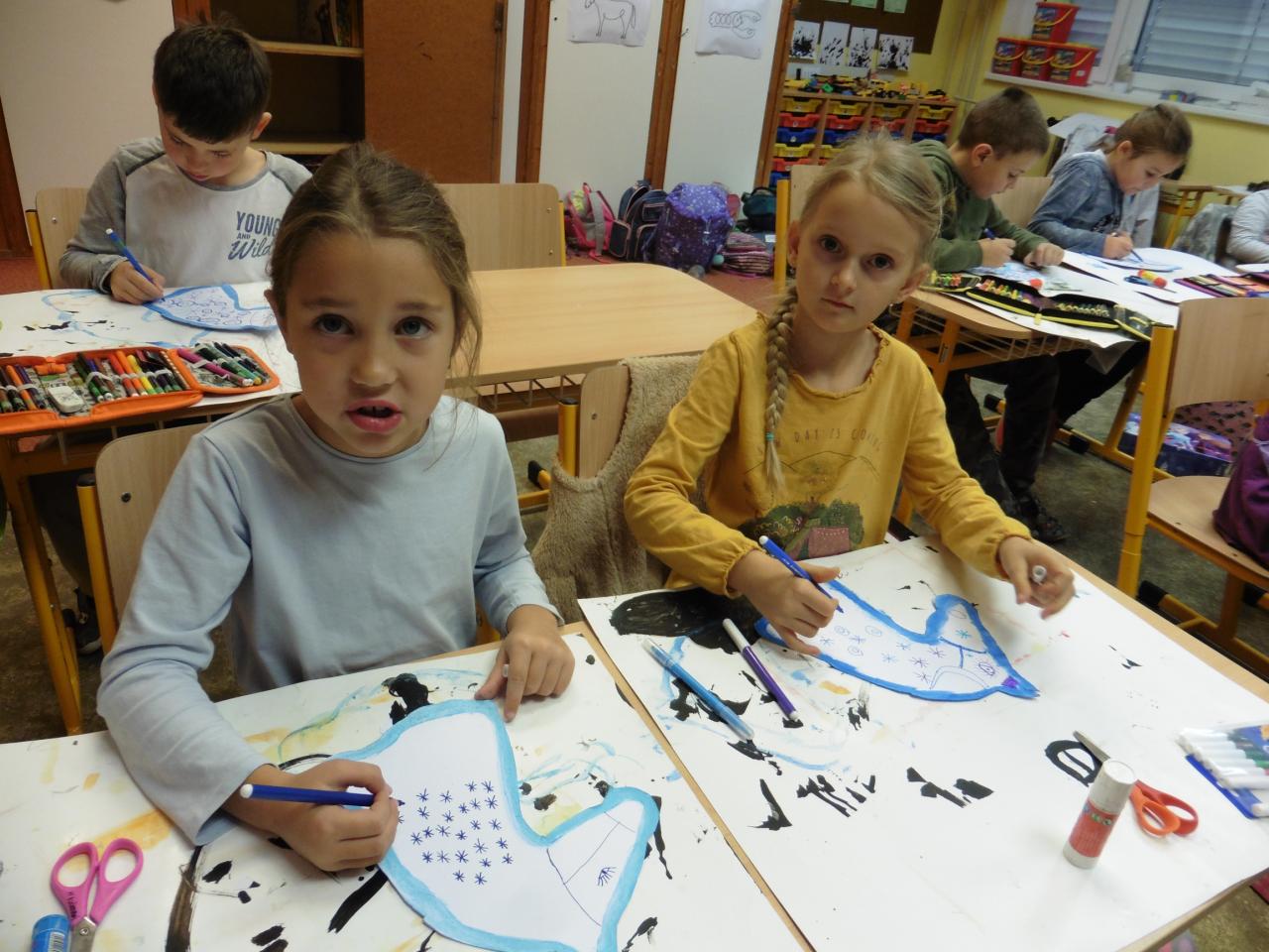 Dnes jsme přivítali Martina říkadly s nástroji. Potom jsme vybarvovali, počítali i ochutnávali martinské rohlíčky, poslechli si legendu a skládali příběh podle obrázků. Nakonec jsme vyrobili bělouše pro Martina a naučili se básničku.