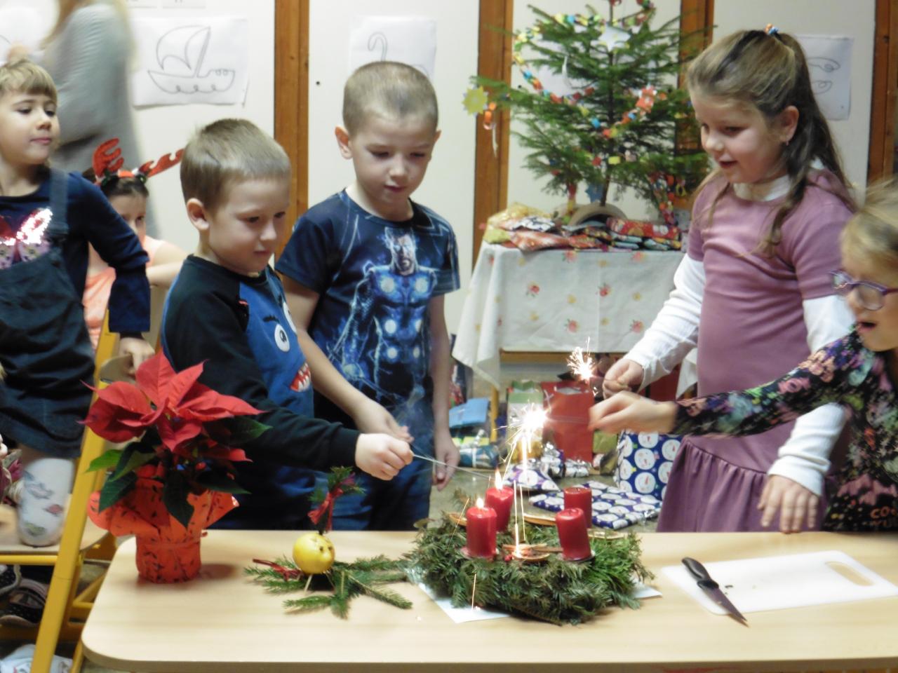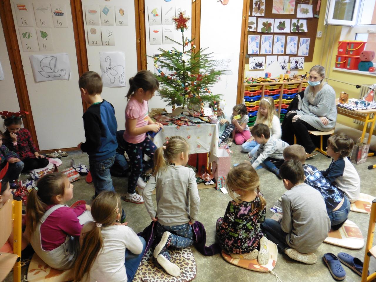 Jednou v roce na Vánoce... společně se radujeme. Od vánočních zvyků jsme přešli ke koledám a nadílce dárků.