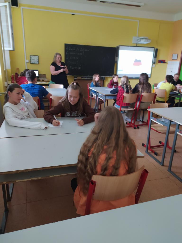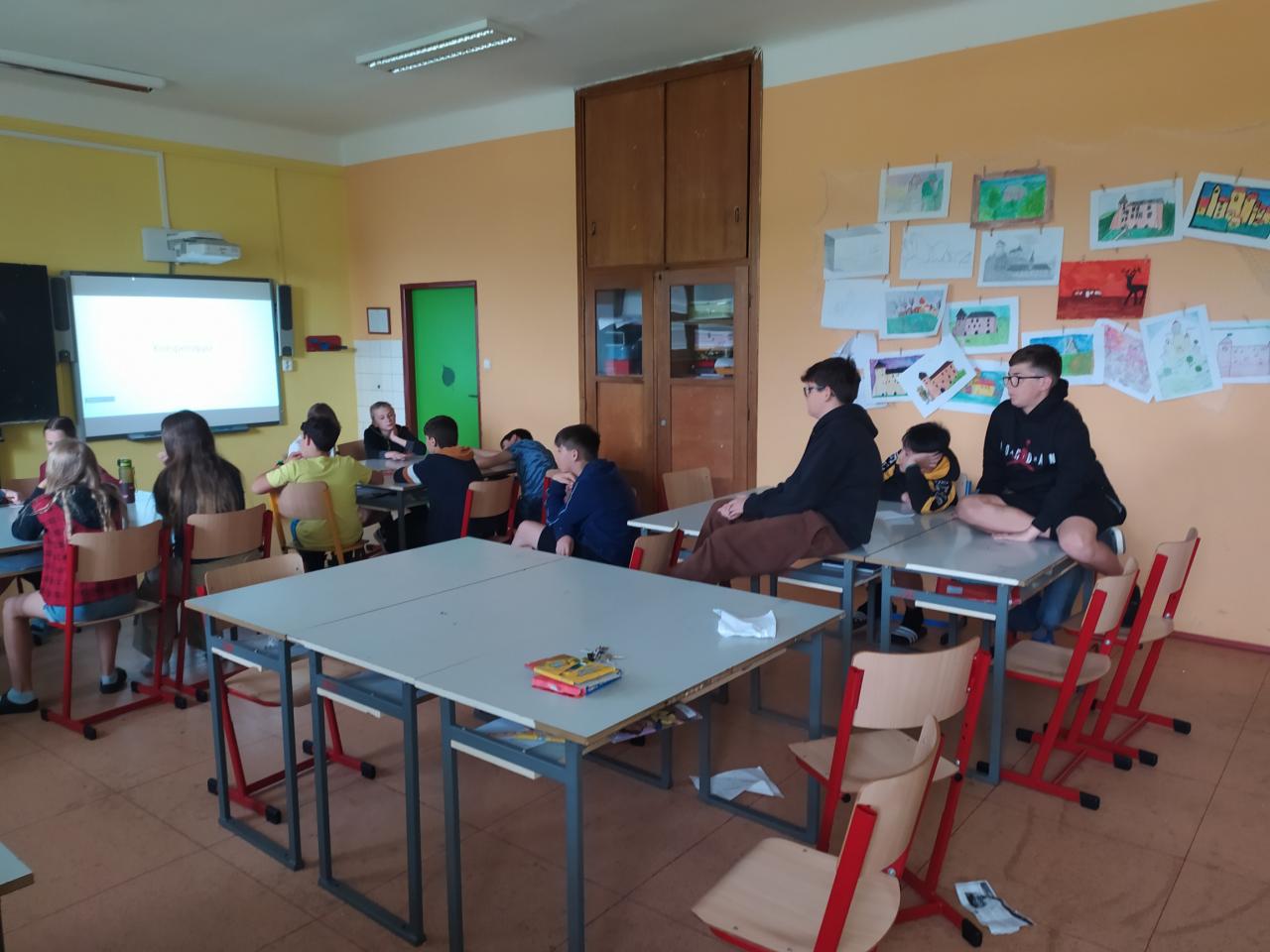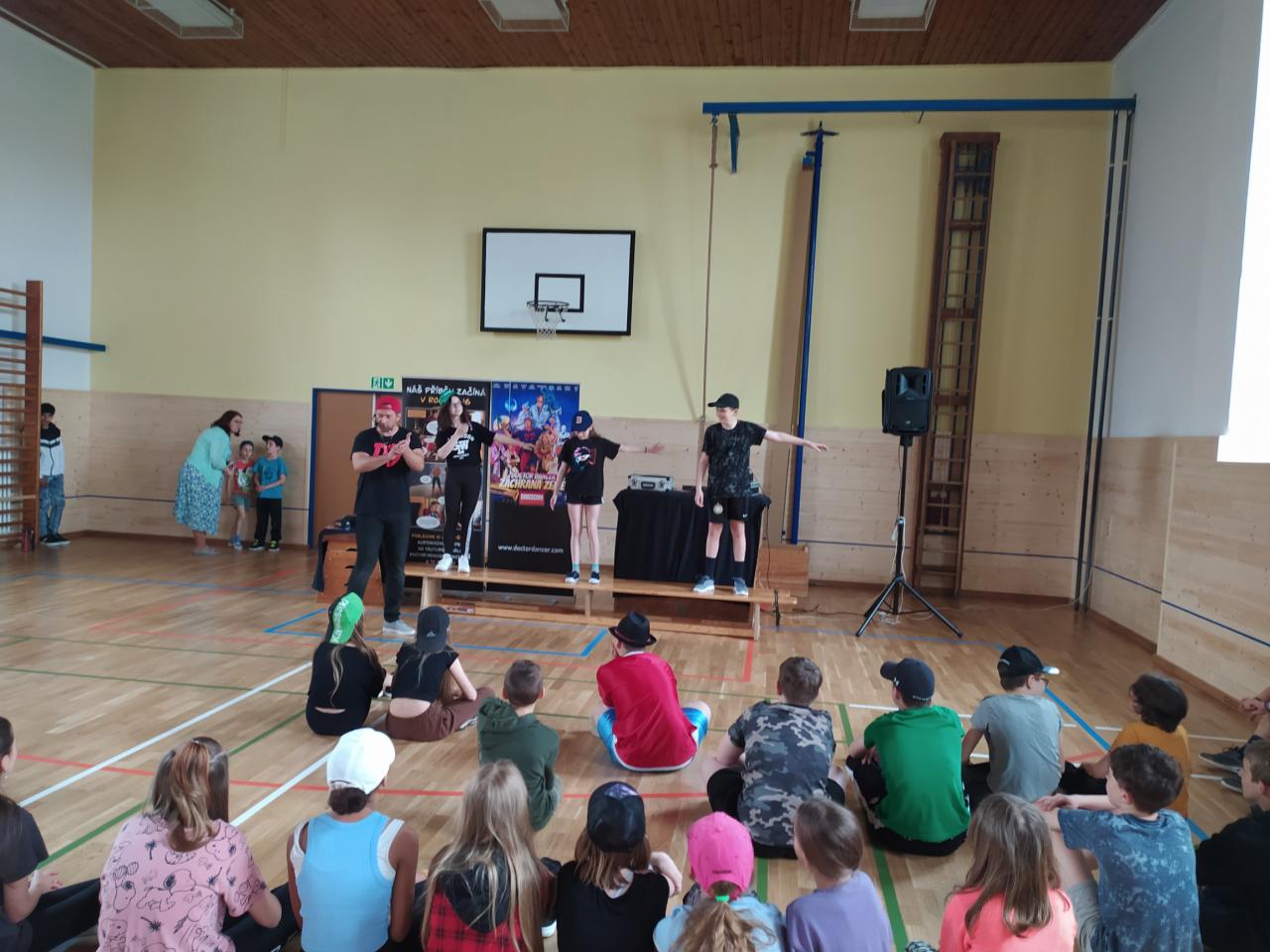 zpívání na radnici, hry a výuka ve třídě, akce v tělocvičně a na školní zahradě..