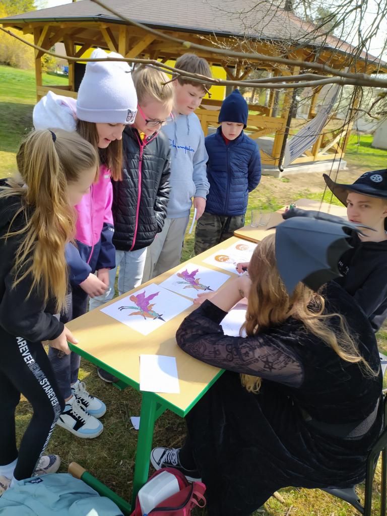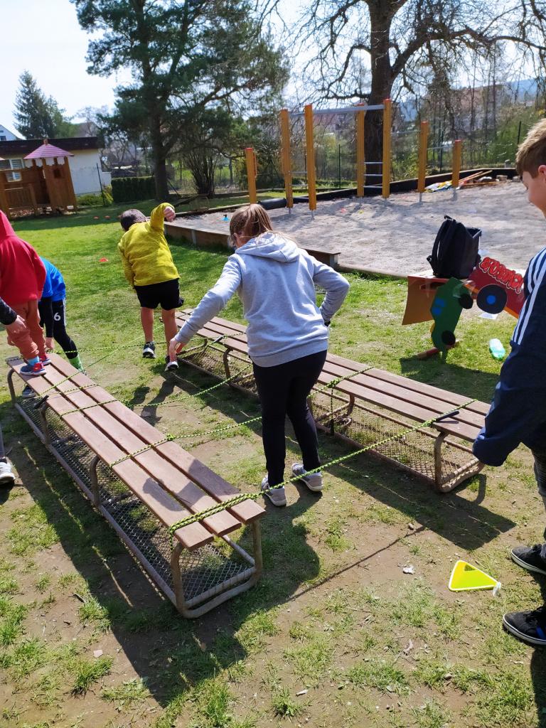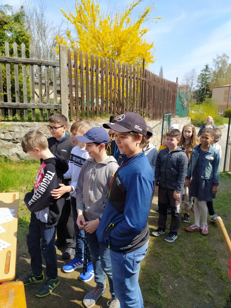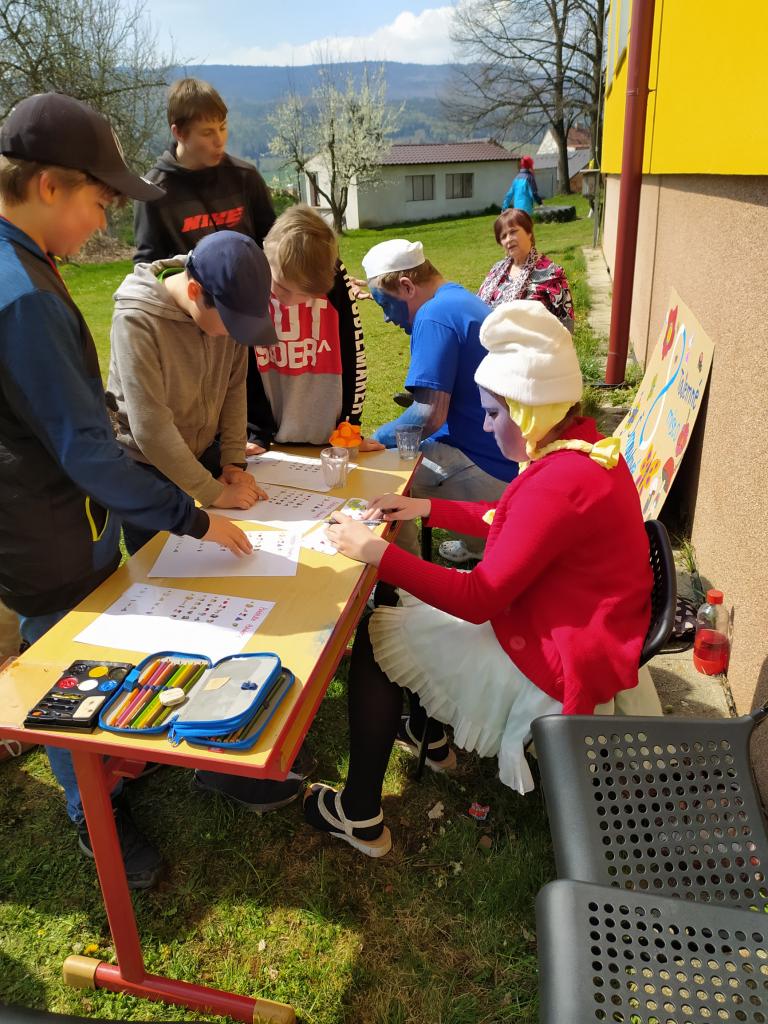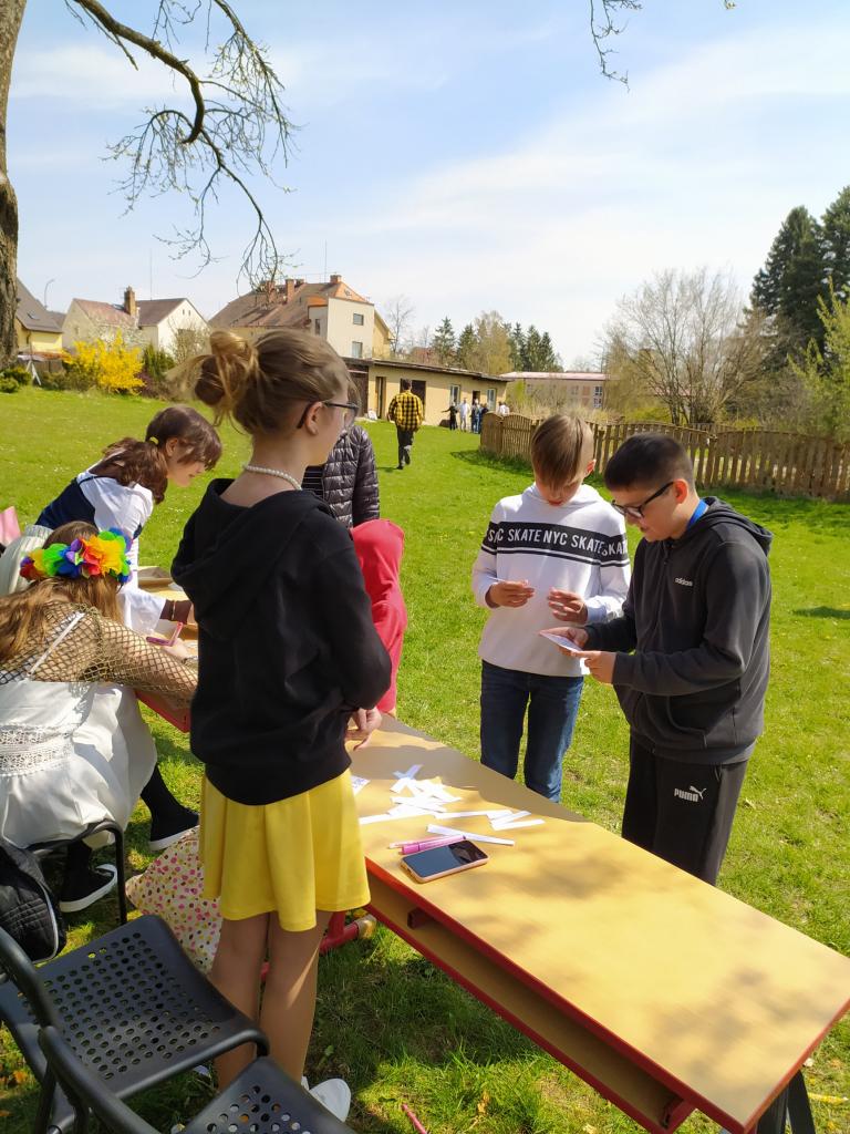 V pátek 29.4. si žáci sedmých tříd připravili pro první stupeň na zahradě pohádkovou stezku plnou úkolů.