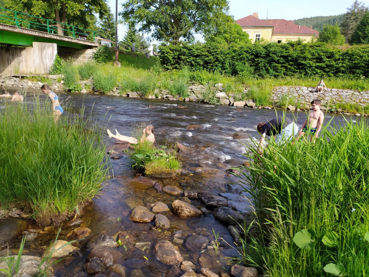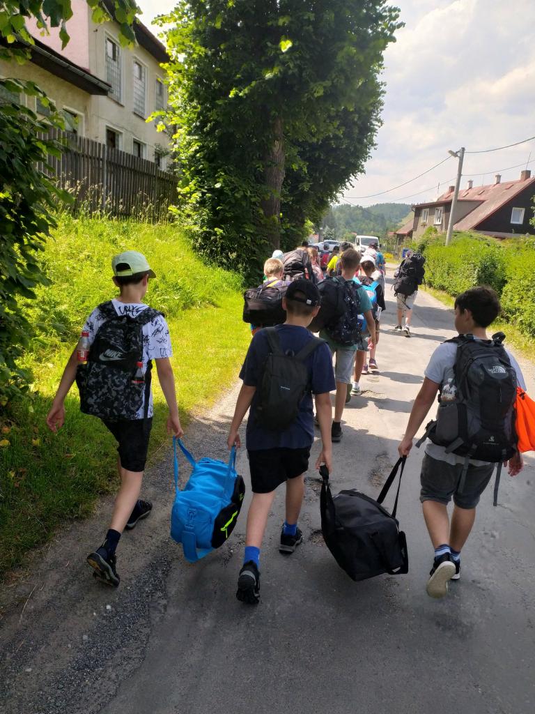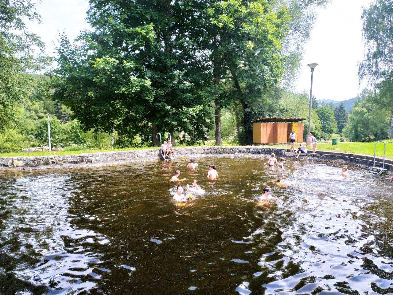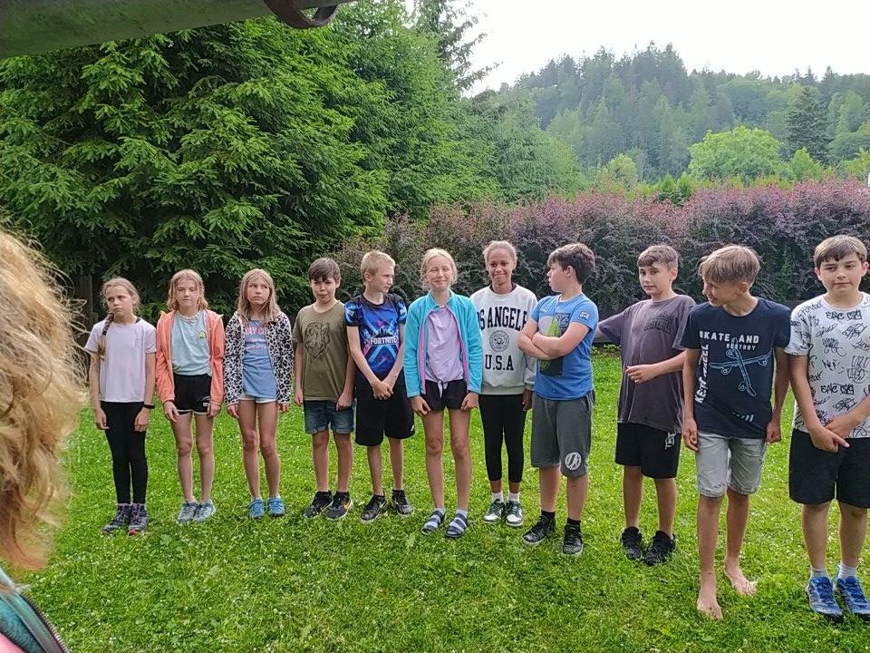 koupání Annín, pěšky s batohy a bouřkou do kempu, večerní vystoupení skupin, výlet na Kašperk, oheň...