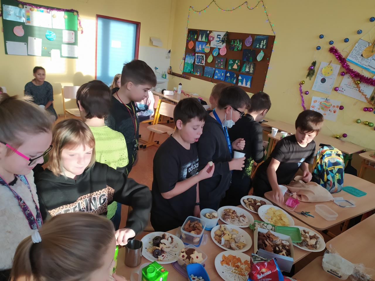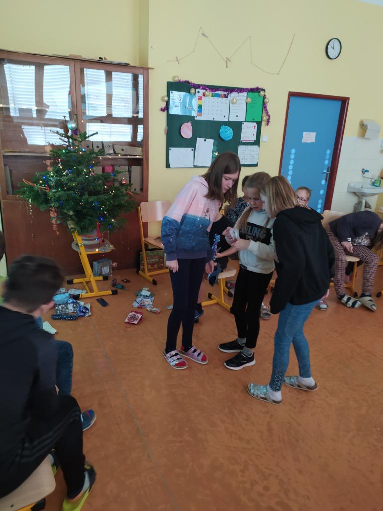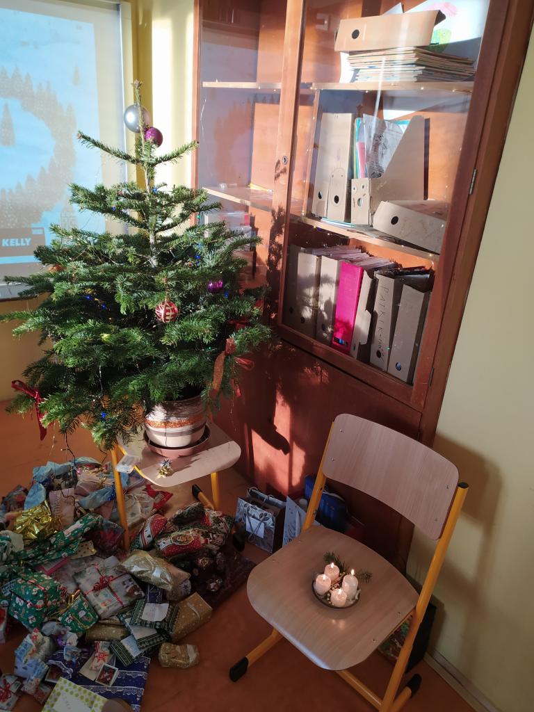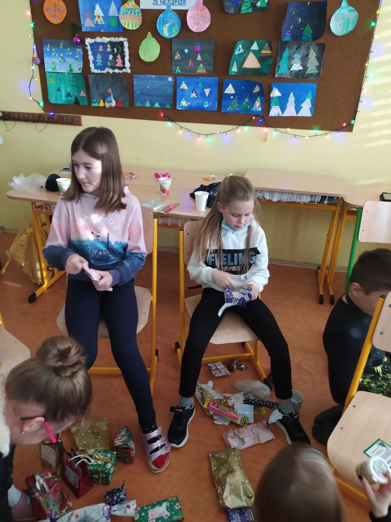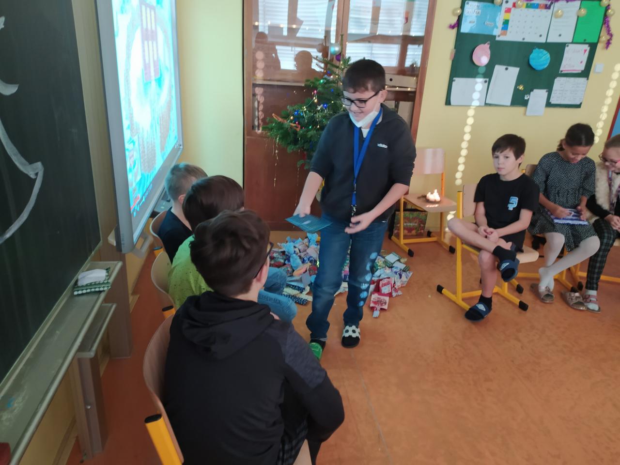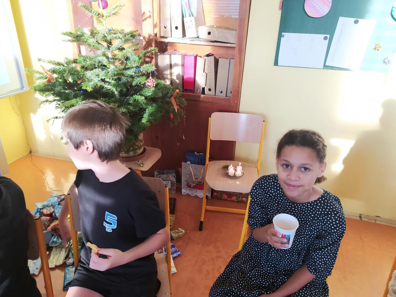 Rozdávání dárečků, zpívání koled a ochutnávání dobrůtek před vánočními prázdninami.