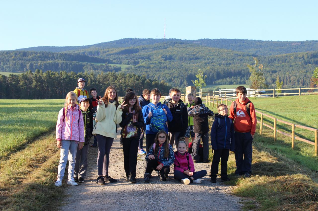 Náš první společný výlet na Kleť. Ve čtvrtek 23.9.2021 jsme se ráno sešli před školou a společně jsme vyrazili na 16km dlouhou túru na Kleť a zpátky. Děti byly šikovné a všechny zdárně došly. Na zahradě nás čekala odměna ve formě buřtů a her.